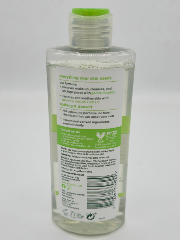 میسلار واتر سیمپل حاوی ویتامین (B )Water Boost Micellar Water انقلابی در پاک کردن آرایش است. برخالف بسیاری از میسلارها که صرفا ً آرایش را پاک میکنند، این محصول با ترکیبات فعال خود، پوست را در حین پاکسازی تغذیه و تقویت میکند. این میسلار واتر به دلیل عملکرد چندکاره اش، یکی از پرفروش ترین محصلات برند سیمپل است.