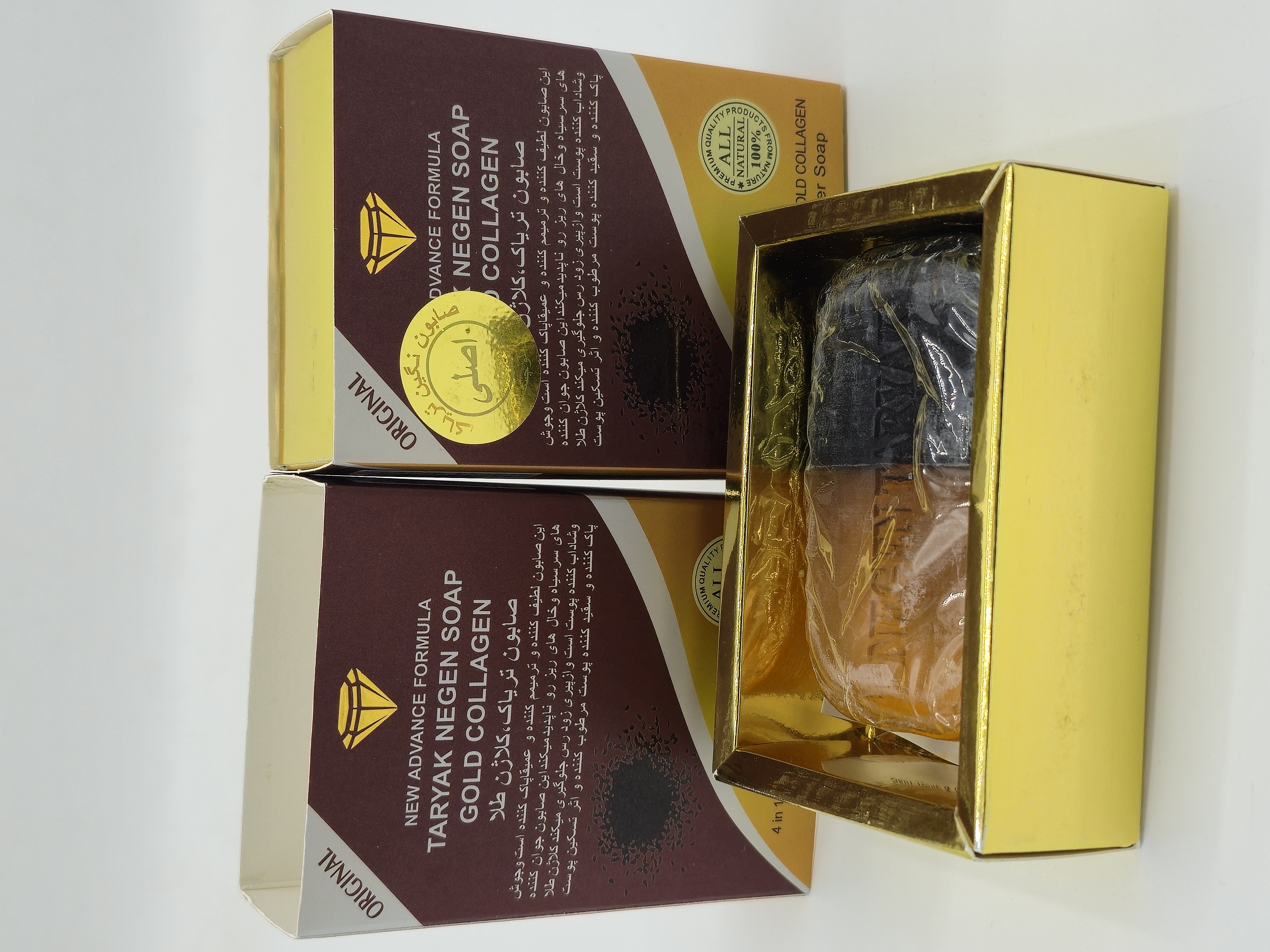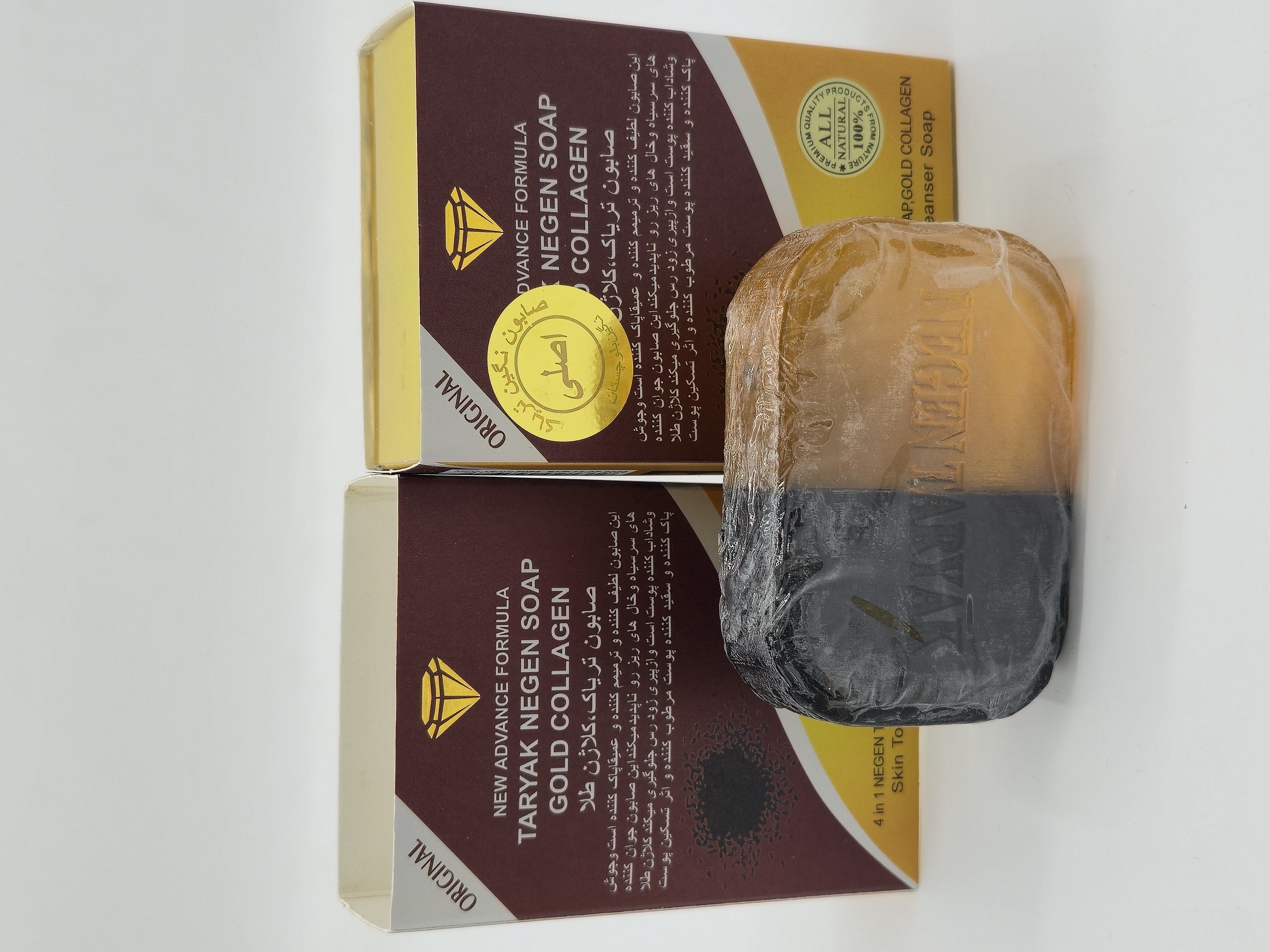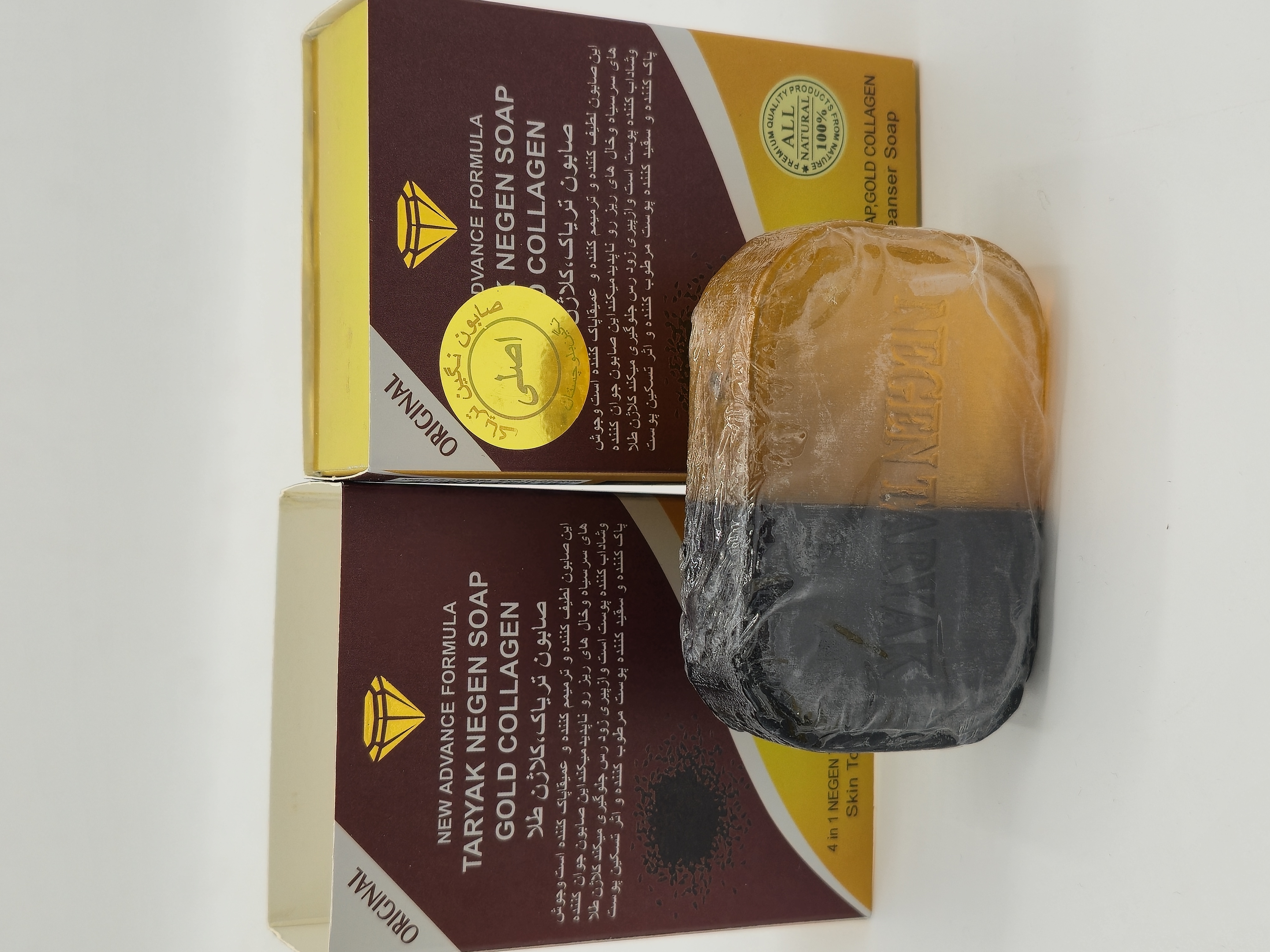 صابون شستشو کلاژن دورنگ طلایی ۱۲۰ گرمی